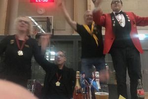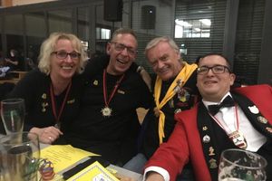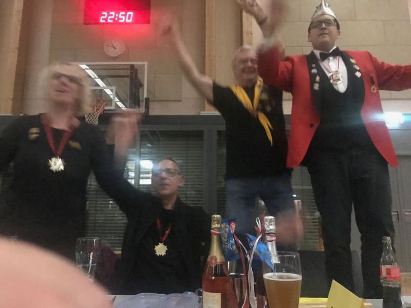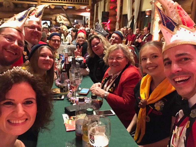 Abschließend ließ sie es sich nehmen zu einer weiteren Abordnung aus Elferräten, Brauchtümlern und Uhu´s dazu zustoßen und dem frisch vorgestellten Prinzenpaar des 1. Karnevalverein Leonberg e.V. - Gesellschaft Engelberg bei deren Ordensfest zu gratulieren. Gemeinsam ließ man hier den Abend ausklingen und hatte noch viel zu lachen, als der Saal bereits leer war.