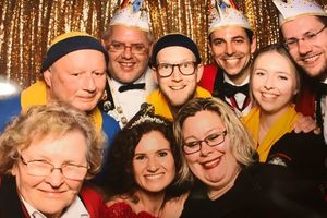 Abschließend ließ sie es sich nehmen zu einer weiteren Abordnung aus Elferräten, Brauchtümlern und Uhu´s dazu zustoßen und dem frisch vorgestellten Prinzenpaar des 1. Karnevalverein Leonberg e.V. - Gesellschaft Engelberg bei deren Ordensfest zu gratulieren. Gemeinsam ließ man hier den Abend ausklingen und hatte noch viel zu lachen, als der Saal bereits leer war.