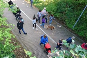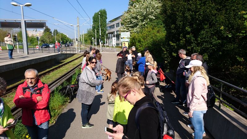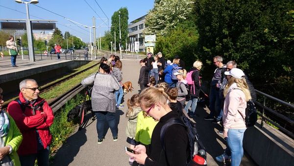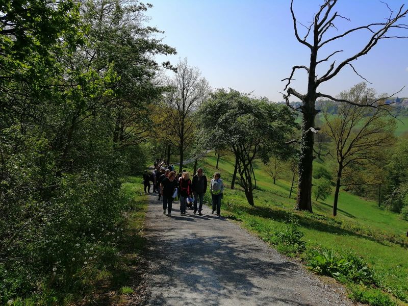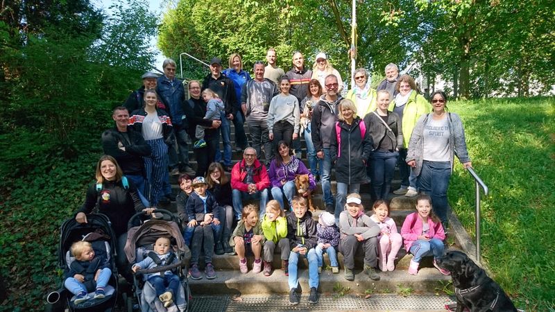Unter der Führung von Herman, startete die 40-Personen große Gruppe in Heumaden und umwanderte über grüne Wiesen, entlang des Auener Baches den Stadtteil Riedenberg.
