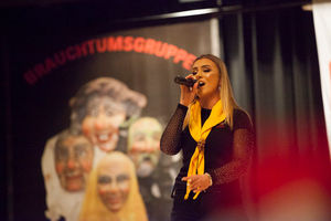 Doch bis es letztlich soweit war, mussten sich die zahlreich erschienen Gastvereine und Freunde des Quellen-Clubs noch etwas gedulden und wurden einmal richtig an der nase herum geführt. Schließlich machte die Eröffnung niemand anderes als Alena selbst. Als Schlagersängerin präsentierte sie zwei Lieder aus ihrem Programm und heizte dem Saal gleich zu beginn mächtig ein, bevor sie hinter der Bühne verschwand und sich für ihre zukünftige Rolle bereit machte.