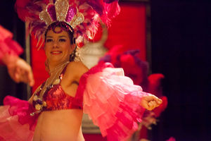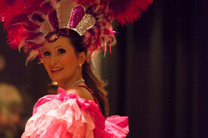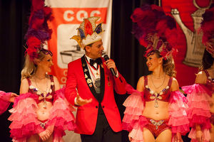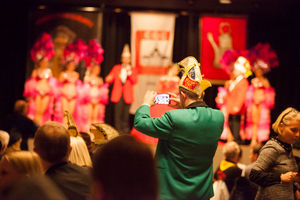 Doch bis es letztlich soweit war, mussten sich die zahlreich erschienen Gastvereine und Freunde des Quellen-Clubs noch etwas gedulden und wurden einmal richtig an der nase herum geführt. Schließlich machte die Eröffnung niemand anderes als Alena selbst. Als Schlagersängerin präsentierte sie zwei Lieder aus ihrem Programm und heizte dem Saal gleich zu beginn mächtig ein, bevor sie hinter der Bühne verschwand und sich für ihre zukünftige Rolle bereit machte.