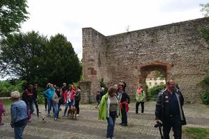 Anschließend wanderte die Gruppe auf dem Kamm der Weinberge in Richtung Mühlhausen, wo sie sich die Ruinen der Engelburg und der Walpurgiskirche anschauten. Über den Vier-Burgen-Steg gelangte die Gruppe zurück auf die Hofener Neckarseite und stiegen auf zur Hofener Burgruine und St. Barbara. Von hier ging es zurück zum Ausgangspunkt, wo sich die Gruppe aufteilte um in der alten Ziegelei zum gemütlichen Ausklingen der Wanderung wieder zusammen zu kommen.