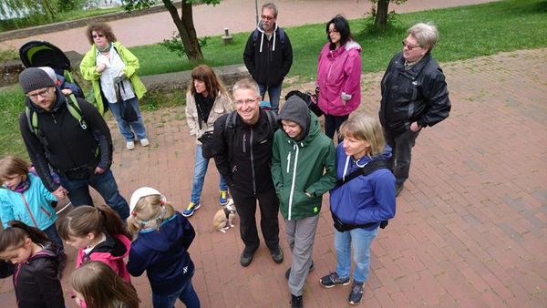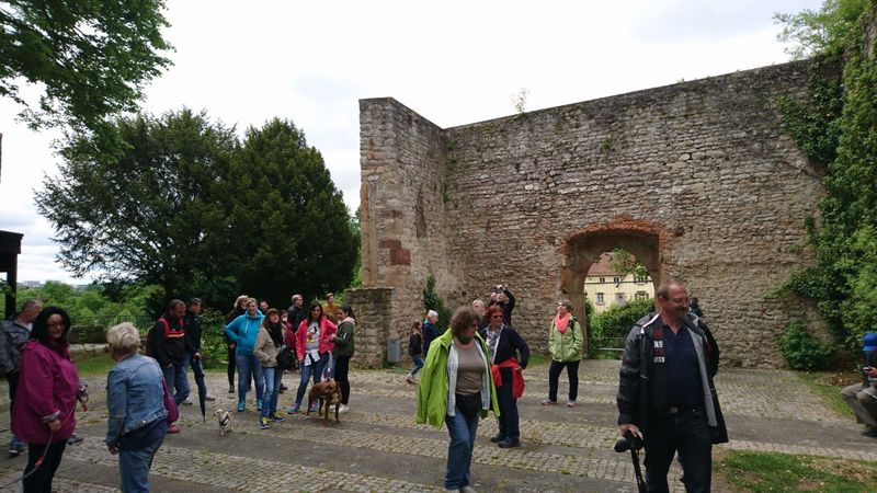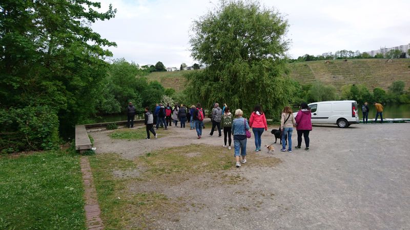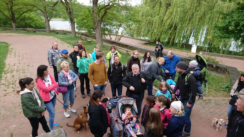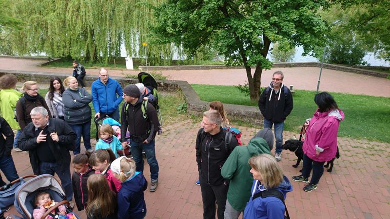 Bei schönstem Wanderwetter kamen viele Mitglieder und ihre Familien um der neusten Wanderstrecke von Hermann zu folgen. Dieser hatte die Vier-Burgen-Tour von Mühlhausen im Gepäck und so startete die 30 Personen große Gruppe am Max-Eyth-See und nahm Kurs auf den Max-Eyth-Steg.